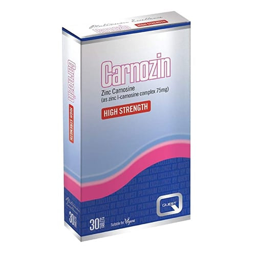 Quest Carnozin provides 75mg of Zinc carnosine per tablet. Carnozin is a combination of l-carnosine and zinc.