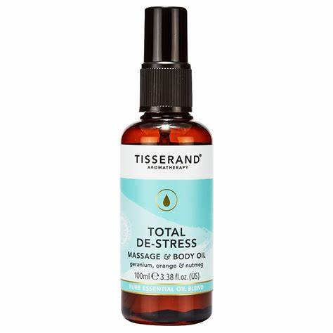Tisserand Total De-Stress Massage & Body Oil is the perfect oil to relax and unwind with as well as soothe your skin! This massage and body oil contains comforting geranium, uplifting orange and soothing nutmeg. Blended with Jojoba oil, this body oil blend is sure to leave your skin feeling amazing and your mind feeling tranquil.